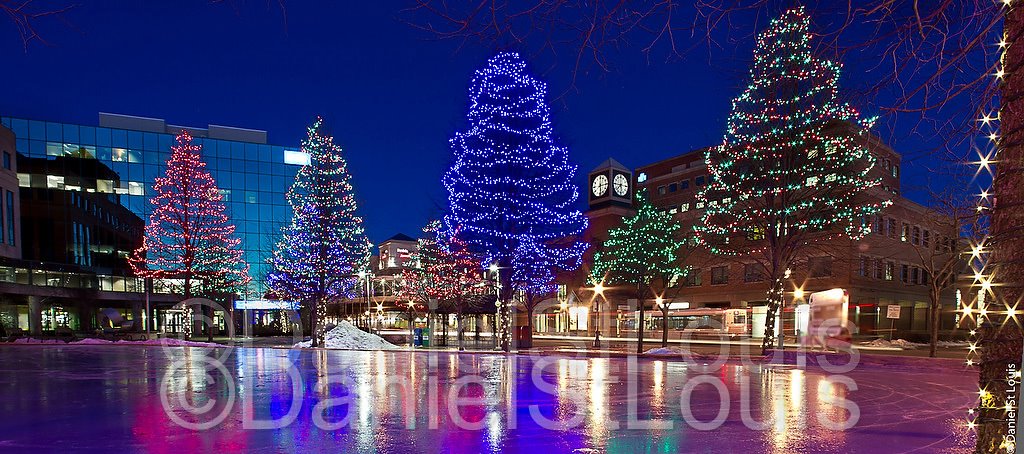 The ice skating rink in front of City Hall, Moncton and the Blue Cross Bldg.